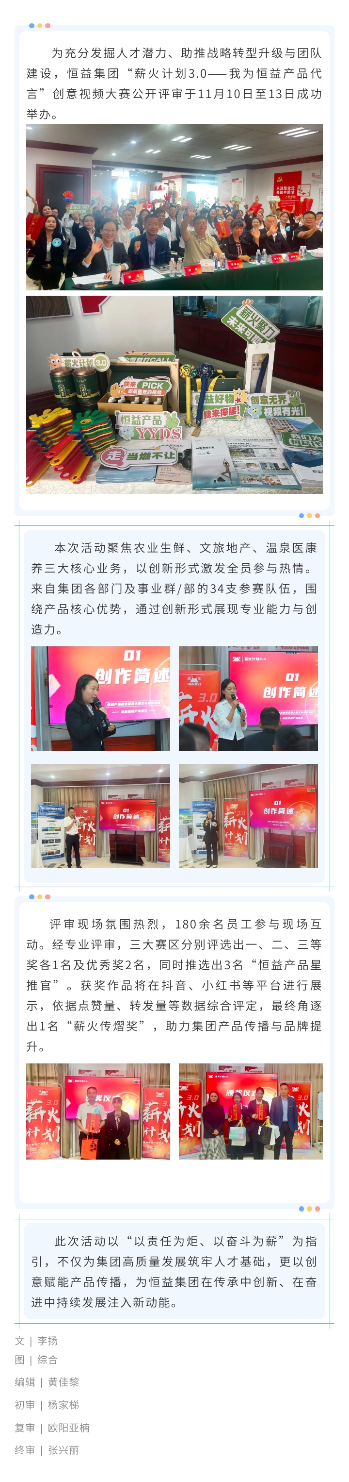 恒益集团“薪火计划3.0”视频创意大赛公开评审圆满落幕 以创意赋能产品传播 来源: 浏览量:420 日期:2025-11-16 分享到: 上一篇:恒益集团与云南财经大学签约授牌 共启文旅育才新篇章 下一篇:东西方慈善论坛联合创始人一行到访恒益集团 共探公益合作新路径