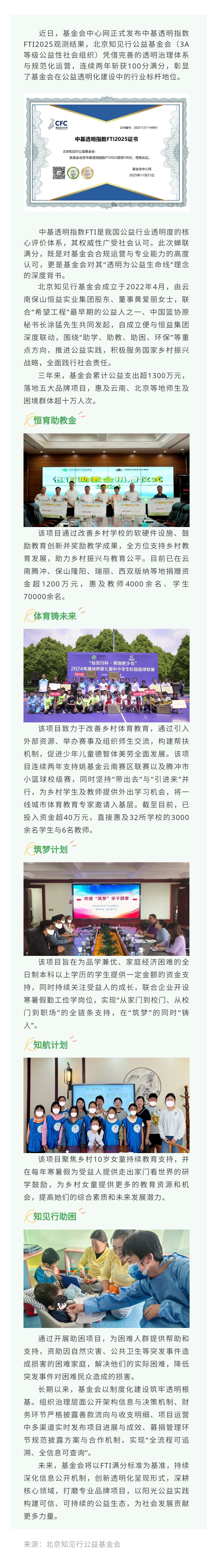 北京知见行公益基金会再获中基透明指数FTI2025满分 来源: 浏览量:268 日期:2025-11-26 分享到: 上一篇:恒益集团携手中轻国际 共筑康养产业合作新篇章 下一篇:温泉中医赋能旅居云南,旅居与医康养创新发展论坛重磅嘉宾及议程公布