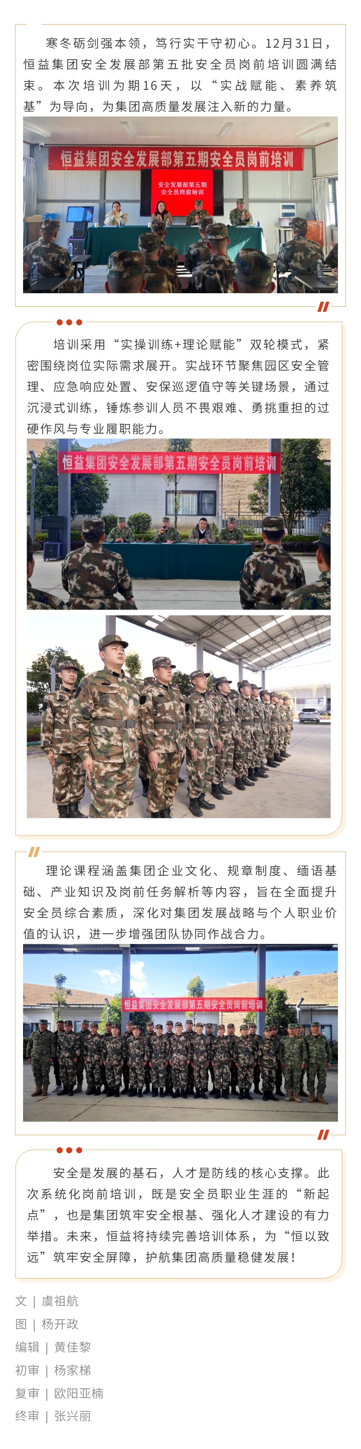 恒益集团第五批安全员岗前培训圆满结束 来源: 浏览量:942 日期:2026-01-04 分享到: 上一篇:校企协同 产教融合 | 恒益集团与保山中医药高等专科学校达成共建“温泉学院”合作共识 下一篇:喜讯!恒益集团连续三年荣登云南企业百强双榜
