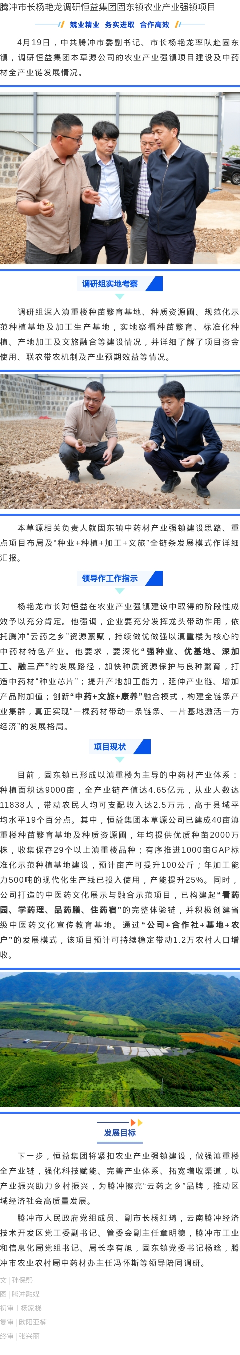 腾冲市长杨艳龙调研恒益集团固东镇农业产业强镇项目 来源: 浏览量:144 日期:2026-04-21 分享到: 上一篇:世界地球日丨恒益邀您一起“向绿而生” 下一篇:致敬坚守,感恩奉献丨恒益集团召开何家胜先生光荣退休座谈会