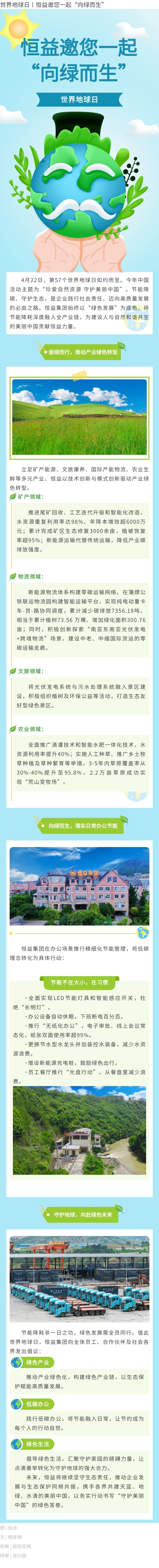 世界地球日丨恒益邀您一起“向绿而生” 来源: 浏览量:114 日期:2026-04-22 分享到: 上一篇:恒益“气排天团”热血出征,斩获佳绩燃动五一 下一篇:腾冲市长杨艳龙调研恒益集团固东镇农业产业强镇项目