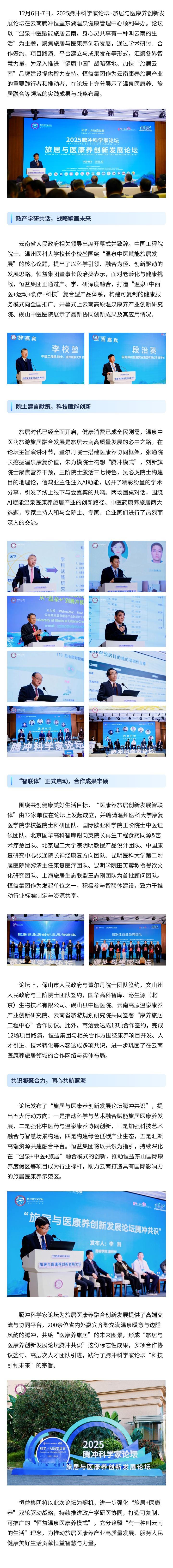 2025腾冲科学家论坛·旅居与医康养创新发展论坛顺利举办,成果丰硕推动产业融合发展 来源: 浏览量:85 日期:2025-12-08 分享到: 上一篇:喜讯!恒益集团连续三年荣登云南企业百强双榜 下一篇:恒益农业亮相腾冲科学家论坛,成果转化助力高原特色农业高质量发展